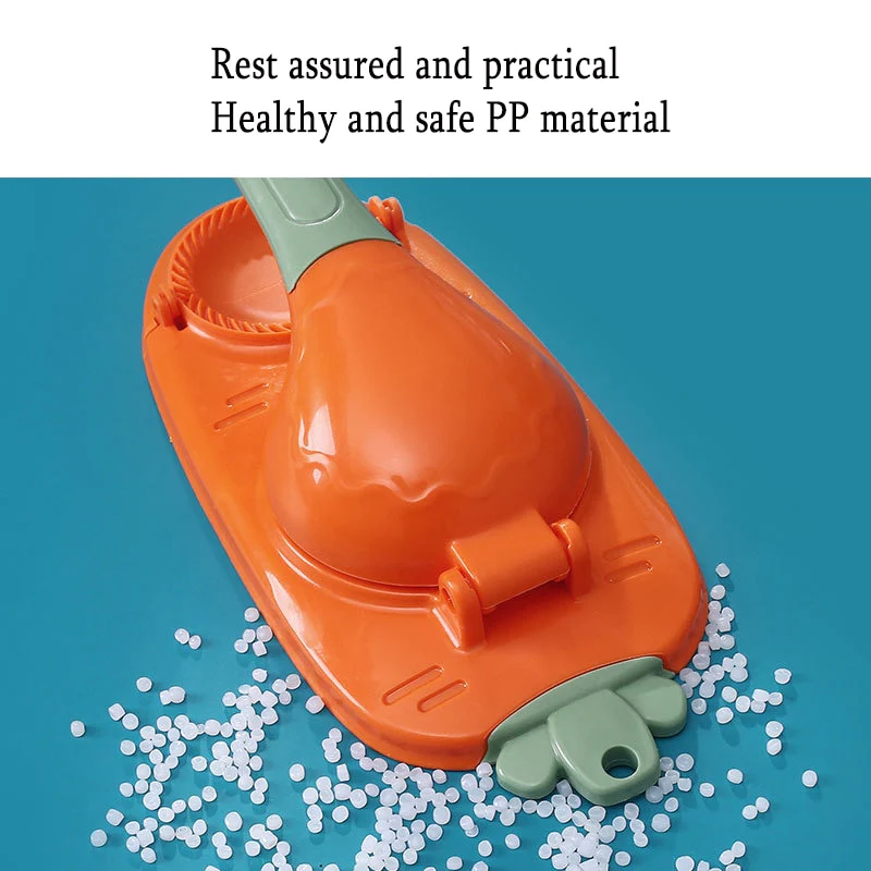 🥟 【تصميم مريح و أمن】 صانع القطائف الـ 2 في 1  مصنوع من مادة PP ، آمن . يختلف المقبض عن صانع القطائف التقليدي ، ويتميز بتصميم غير قابل للانزلاق ، ويحافظ المقبض والجزء السفلي على مسافة مثالية لمنع ضغط أصابعك تمامًا.