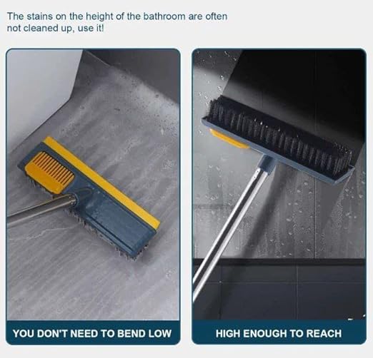 فرشاة تنظيف الارضيات 2 في 1 مع مقبض طويل وفرشاة بلاط