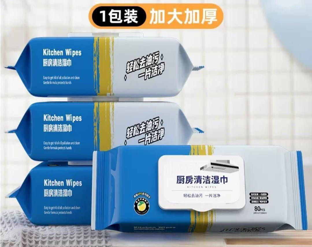 🧼 مناديل مبللة لإزالة الدهون والزيوت – 80 قطعة