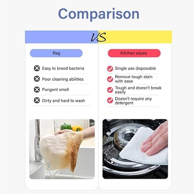 مناديل تنظيف فعّالة تزيل الدهون والزيوت والبقع بسهولة من المطبخ، الحمام، والأسطح المتعددة.