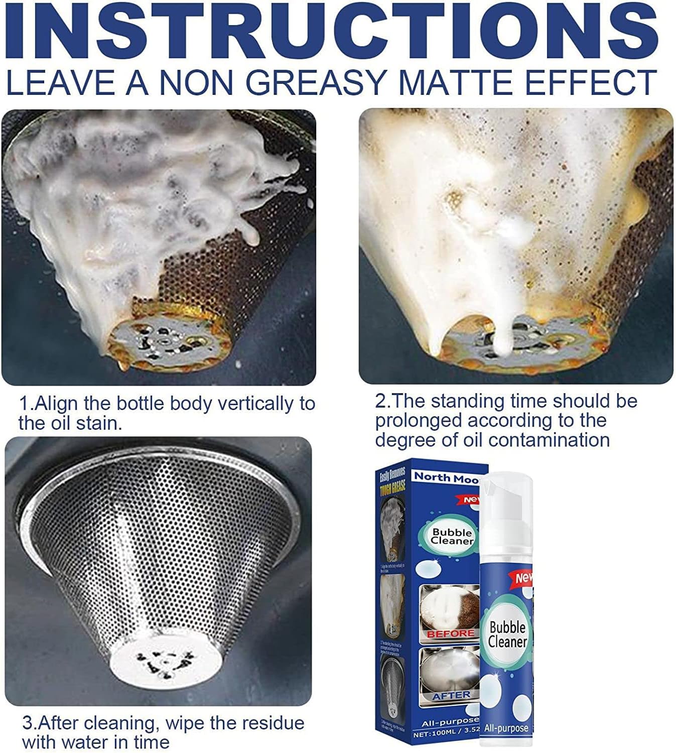 يمكن لبخاخ التنظيف الرغوي إزالة الشحوم والبقع الأكثر انتشارًا على جميع منتجات المطبخ.