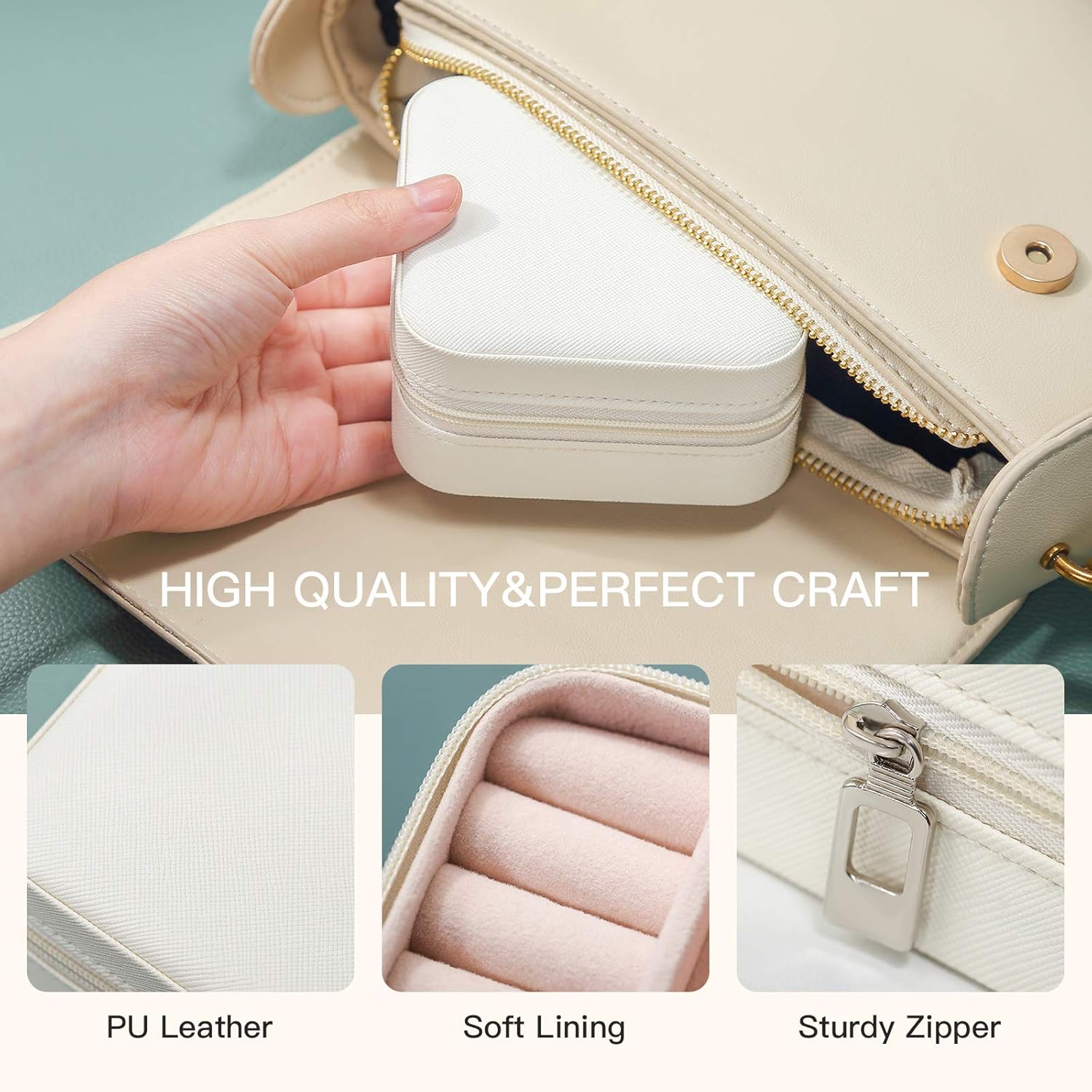 مادة جلدية عالية الجودة ، شعور ناعم ، ختم جيد بسحاب ناعم. صندوق قوي: صندوق المجوهرات مصنوع جيدًا لتحمل الصدمات أو قطرات الأمتعة للحفاظ على مجوهراتك آمنة أثناء السفر.