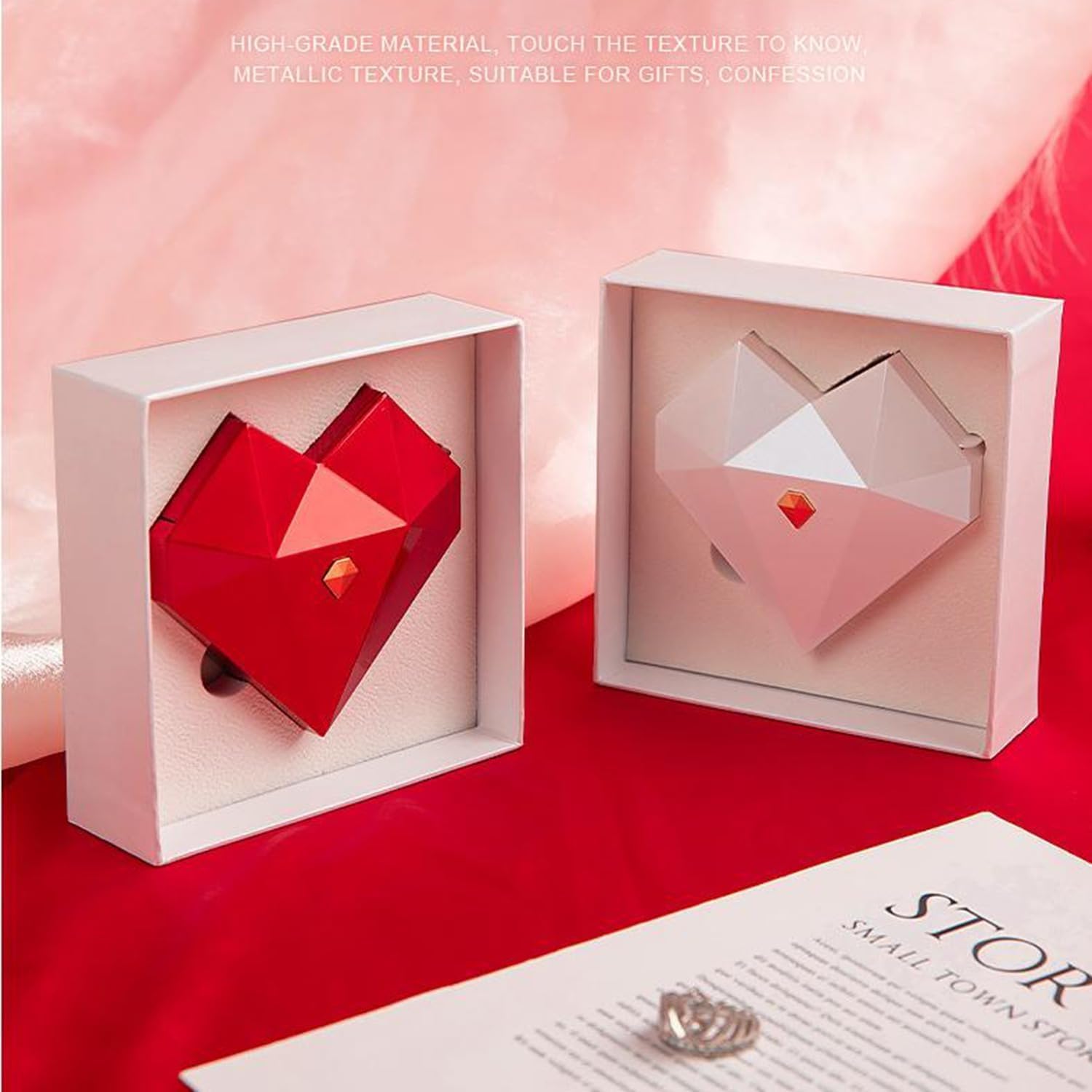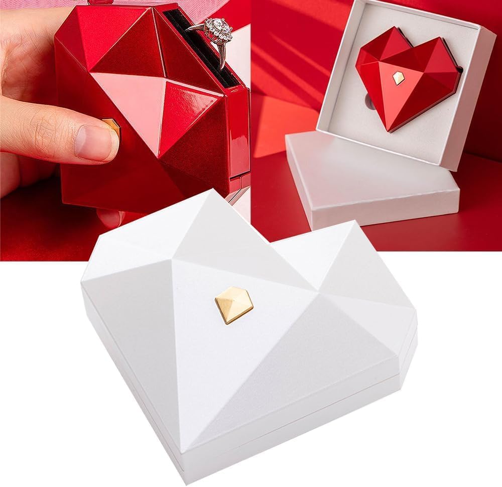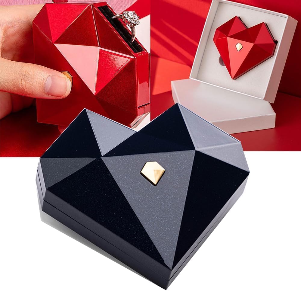 بوكس فاخر على شكل قلب ماسي مع آلية فتح منبثقة بتعرض الخاتم بشكل مبهر.